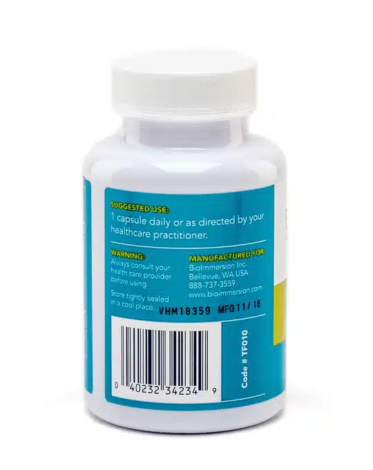 BioImmersion Probiotic Super Blend – Probiotics- Bifidobacterium longum, Lactobacillus casei, Lactobacillus acidophilus, Lactobacillus bulgaricus and streptococcus thermophilus; Prebiotic- Inulin from chicory Root; Supernatant- probiotic metabolites, and ORNs. 30 billion CFU.