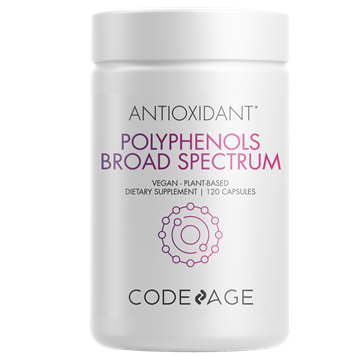 Codeage Polyphenols Broad Spectrum offers a high-quality blend of 16 different berries, fruits, and botanical extracts to offer a vegan all-in-one polyphenols solution. This polyphenol formula features organic and decaf green tea leaf extract. Green tea is a well-known source of polyphenols and can conveniently be consumed in a green tea pill format.These polyphenols and quercetin pills feature 16 different polyphenols to help provide a source of resveratrol. The solution can also offer a source of flavonoids and phenolic compounds.The ingredients used in this proprietary blend is known to: Support joint health* Support brain function* Support digestion*Dietary ConsiderationsDairy/ Milk FreeVeganNon-GMOKeto CertifiedServing Size:4 CapsuleServings Per Container:30Amount Per ServingProprietary Blend:2370 mgPomegranate Fruit ExtractQuercetin DihydrateTurmeric Extract (Root; Curcuma longa)Bitter Orange (Fruit)Organic Decaf Green Tea (Leaf Extract)Grape Extract (Skin & Seed)Organic Blueberry Fruit ExtractApple Fruit Extract 4:1Aronia Extract (Berry)Olive Extract (Fruit)Aa (Fruit; Euterpe oleracea; 4:1 Extract)Noni (Fruit; Morinda citrifolia)Alfalfa (Whole Plant)Hawthorn Berry PowderCelery Extract (Seed)Other Ingredients:Methylcellulose CapsuleTake 4 capsules daily with 8 ounces of water or your favorite beverage. May be taken with or without food.Do not exceed recommended dose. Pregnant or nursing mothers, children under 18 and individuals with a known medical condition should consult a physician before using this or any dietary supplement. Please use caution if you have allergies or sensitivities to any of the listed ingredients.