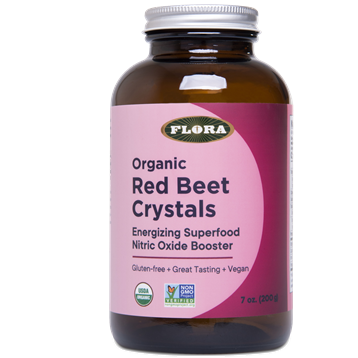 Flora Red Beet Crystals are produced with the utmost care. Pressed from the juice of freshly harvested organic beets, Flora Red Beet Crystals are instantly soluble and provide an easy and delicious way to enjoy the goodness of beets.Each jar contains the equivalent of 5.7 lbs. of fresh, organic beets. Naturally sweet tasting, Flora Red Beet Crystals can easily be added to breakfast, lunch, dinner, and even snacks! 4 g sugar (per serving) occur naturally in red beets. No sugar added from other sources.Dietary Considerations Gluten Free; Organic; Vegan; Non-GMO; Serving Size:3 TeaspoonServings Per Container:40 Nutrition Facts; Calories 20; Total Fat 0 g 0%; Saturated Fat 0 g 0%; Trans Fat 0 g; Cholesterol 0 mg 0%; Sodium 15 mg 1%; Total Carbohydrate 4 g 2%; Dietary Fiber 0 g 0%; Total Sugars 4 g; Includes 4 g Added Sugars 7%; Protein 0 g; Vitamin D 0 mcg 0%; Calcium 0 mg 0%; Iron 0.3 mg 2%; Potassium 140 mg 2%; IngredientsOrganic red beet crystals. Contains 2% or less of citric acid.Suggested UseAdd 3 teaspoons (approx. 5 g) to food or drinks. Also delicious when eaten dry straight from the spoon. This product is suitable for daily consumption.WarningStore at room temperature. After opening, store in a dry place and protect from moisture. Replace the cap tightly after use as Red Beet Crystals readily absorb moisture when exposed to air. Although moisture may cause caking of the crystals, the product’s integrity will not be compromised. The filling level may fluctuate according to crystal density.