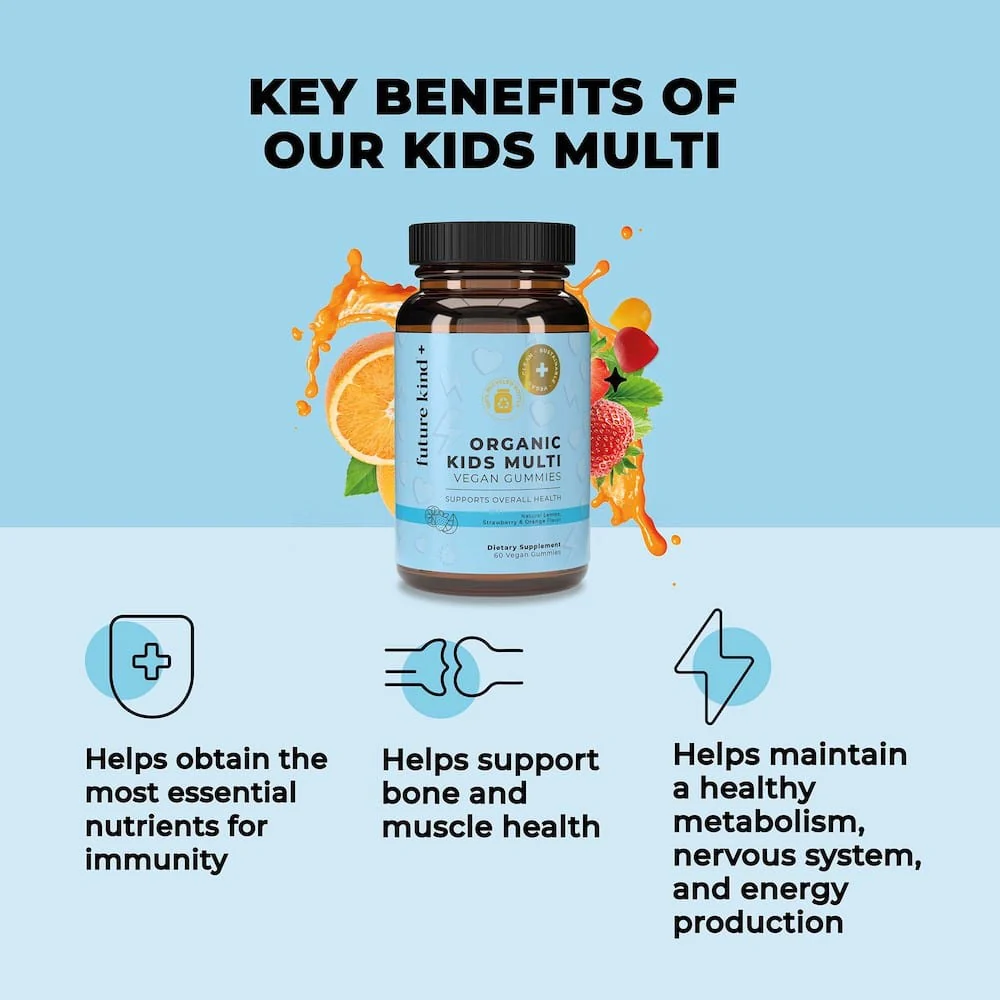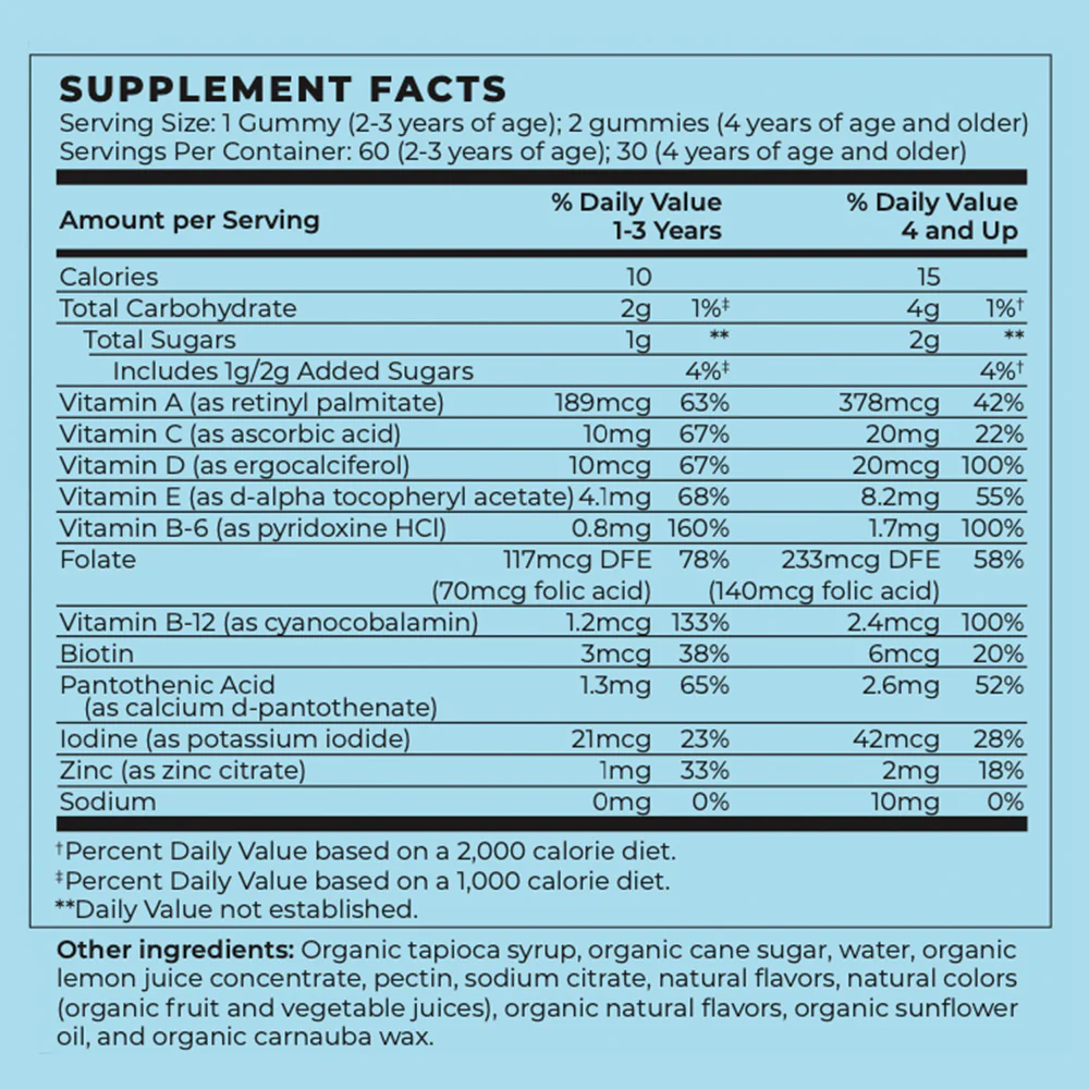 Featuring a comprehensive, organic multivitamin and mineral complex to cover all the basics and more, these chewy, multivitamin gummies are perfect for satisfying a kid’s sweet tooth while delivering all the vitamins and minerals they need the most.