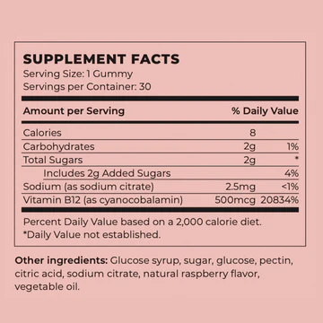 Manufactured in the US at a GMP certified facility, our gummies uses the most studied form of B12, cyanocobalamin.