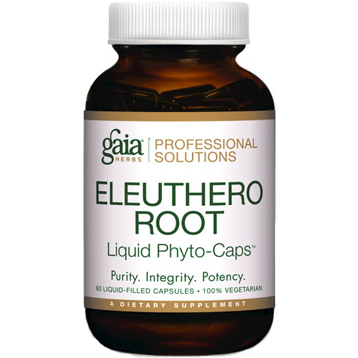 Eleuthero is a premier adaptogenic herb which supports the bodys natural ability to adapt to stress, while supporting mental endurance and metabolic efficiency. Made from ecologically harvested Eleuthero Root , Gaia HerbsEleuthero Root Phyto-Caps offer liquid extract potency, delivering 3,350 mg dry herb equivalency in each serving.Dietary ConsiderationsGluten FreeVegetarianSoy FreeVeganSuggested UseAdults take 1 capsule 2 times daily between meals.Serving Size:1 CapsuleServings Per Container:60Amount Per ServingTotal Carbohydrate, less than 1 gEleuthero (Eleutherococcus senticosus) root extract 227 mgOther Ingredients:Vegetable glycerin, water, vegan capsule (hypromellose)WarningsNot for use during pregnancy or lactation. If you have a medical condition or take medications, please consult with your healthcare practitioner before use. Use only as directed on label.Safety-sealed for your protection. Keep bottle capped at all times and store in a cool, dry place. Natural separation may occur. This does not affect product quality. Store away from children.