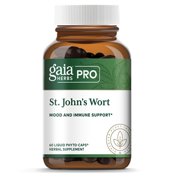 Mood and Immune Support Research has shown that St. Johns Wort extract may support positive emotional health. Each daily serving of Gaia Herbs’ fresh St. John’s Wort flowering buds delivers 1,350 mg of concentrated extract, with 2.7 mg of Hypericins – a dose consistent with that used in published research for providing nervous system support to promote a healthy mood.Dietary ConsiderationsVeganCertified B CorporationSuggested UseAdults take 1 capsule 3 times daily between meals.Serving Size:1 CapsuleServings Per Container:60Amount Per ServingTotal Carbohydrate, less than 1 gProprietary Extract Blend 500 mgSt. Johns Wort (Hypericum perforatum) aerial parts, St. Johns Wort (Hypericum perforatum) aerial parts extractHypericins 0.9 mgOther Ingredients:Vegetable glycerin, water, vegan capsule (hypromellose)WarningsNot for use during pregnancy or lactation. If you have a medical condition or take medications, please consult with your doctor before use. Avoid excessive exposure to UV radiation (e.g. sunlight, tanning) when using this product. Store away from children. Use only as directed on label. Safety-sealed for your protection. Keep bottle capped at all times and store in a cool, dry place. Natural separation may occur. This does not affect product quality.