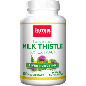 DescriptionJarrow Formulas Milk Thistle Silymarin (Silybum marianum) 30:1 extract is standardized to contain 80% total Milk Thistle seed flavonoids, including the important Silymarin fractions isosilybinins A and B, silybinins A and B, silychristin and silydianin.This particular group of flavonoids, collectively known as Silymarin, supports liver function by helping to maintain protective glutathione levels.*’Dietary ConsiderationsWheat FreeDairy/ Milk FreeGluten FreeVegetarianSoy FreeVeganEgg FreeShellfish FreeNon-GMOFish FreeTree Nut FreePeanut FreeNSF Certified’Suggested UseTake 1 to 3 capsules per day or as directed by your qualified healthcare professional. Serving Size: 1 VCap’Servings Per Container: 200’Amount Per ServingMilk Thistle Seed 30:1 Extract ( Silybum marianum) (80% total flavonoids) *150 mg’Other Ingredients:Cellulose, magnesium stearate (vegetable source), silicon dioxide, Capsule consists of hydroxypropylmethylcellulose.’WarningsIf you have a medical condition, are pregnant, lactating, trying to conceive, under the age of 18, or taking medications, consult your healthcare professional before using this product. Keep out of the reach of children. Store in a cool, dry place. Suitable for vegetarians/vegans.