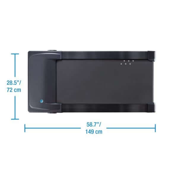 The LifeSpan TR1000-GlowUp is our compact, space-saving option. With the shorter base, this treadmill can fit in the tightest places. Easy to slide under any standing desk, instantly converting it into a treadmill desk. Upgrades from the TR800-GlowUp include a larger motor, a 2″ wider walking belt, and a low-profile design. The portable console is small enough to fit discretely on your desktop and still provide all the features you need, including readouts for steps, time, distance, calories, and speed. The TR1000-GlowUp walking treadmill is durable enough to share with coworkers and quiet enough to keep it all to yourself.