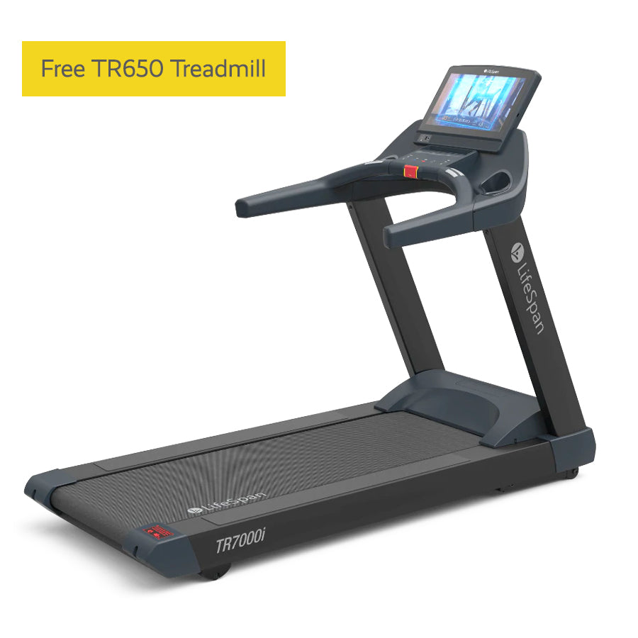 The TR7000iM commercial blacked-out treadmill has redefined performance-grade quality. Elite in every category, these top-of-the-line treadmills pack a 5 horsepower AC motor, durable steel construction, and all the premium features your training program requires for success. The 22″ by 62″ running deck permits full strides, while four impact-absorbing shocks replicate real-world environments that are gentle on your knees, back, and joints. Run or walk with confidence, the LifeSpan TR7000iM professional treadmill comes complete with our full commercial warranty and is ideal for commercial or home gym upgrades. This cutting-edge equipment has optional medical handlebars that help those rehabilitating from injuries approach fitness at a safe, sustainable pace. You can also stay entertained while you work out by using the mirroring feature to screencast your favorite YouTube channels!