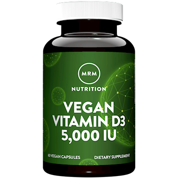 MRM Vegan Vitamin D3 is a unique micro-encapsulated cholecalciferol form of Vitamin D3 that is extracted exclusively from lichens, to meet calcium and bone health needs of both vegans and vegetarians.Unique vegan Vitamin D3 from lichen extractGMO-Free; Non-GMO Project- EnrolledSupports optimal bone mineralization and health*Promotes immune function*Supports a healthy inflammation response*Contains cholecalciferol, the most bioavailable form of Vitamin D60 vegetarian capsulesDietary ConsiderationsWheat FreeDairy/ Milk FreeGluten FreeSoy FreeVeganEgg FreeShellfish FreeNon-GMOServing Size:1 CapsuleServings Per Container:60 Amount Per ServingVegan Vitamin D3 (as Cholecalciferol)5000 IUOther Ingredients:Rice flour, cellulose capsule, modified starch, maltodextrin, sucrose, silicon dioxide, antioxidants (d-alpha tocopherol), antioxidants (ascorbyl palmitate)Suggested Usage: As a dietary supplement, take 1 capsule daily or as directed by your qualified healthcare provider.Contains NO dairy, egg, peanut, tree nut, fish, shellfish, soy, wheat, or gluten.