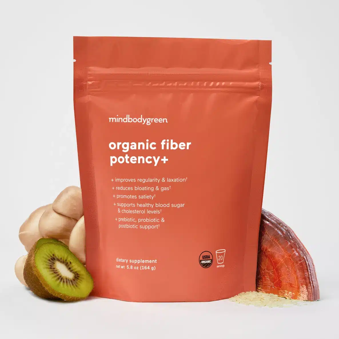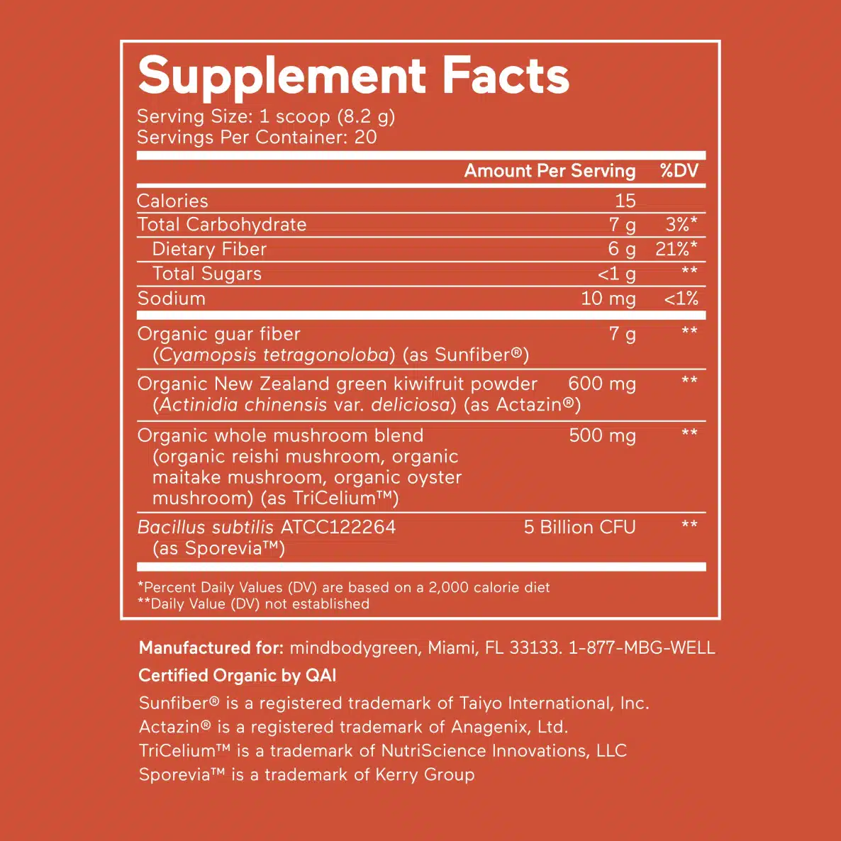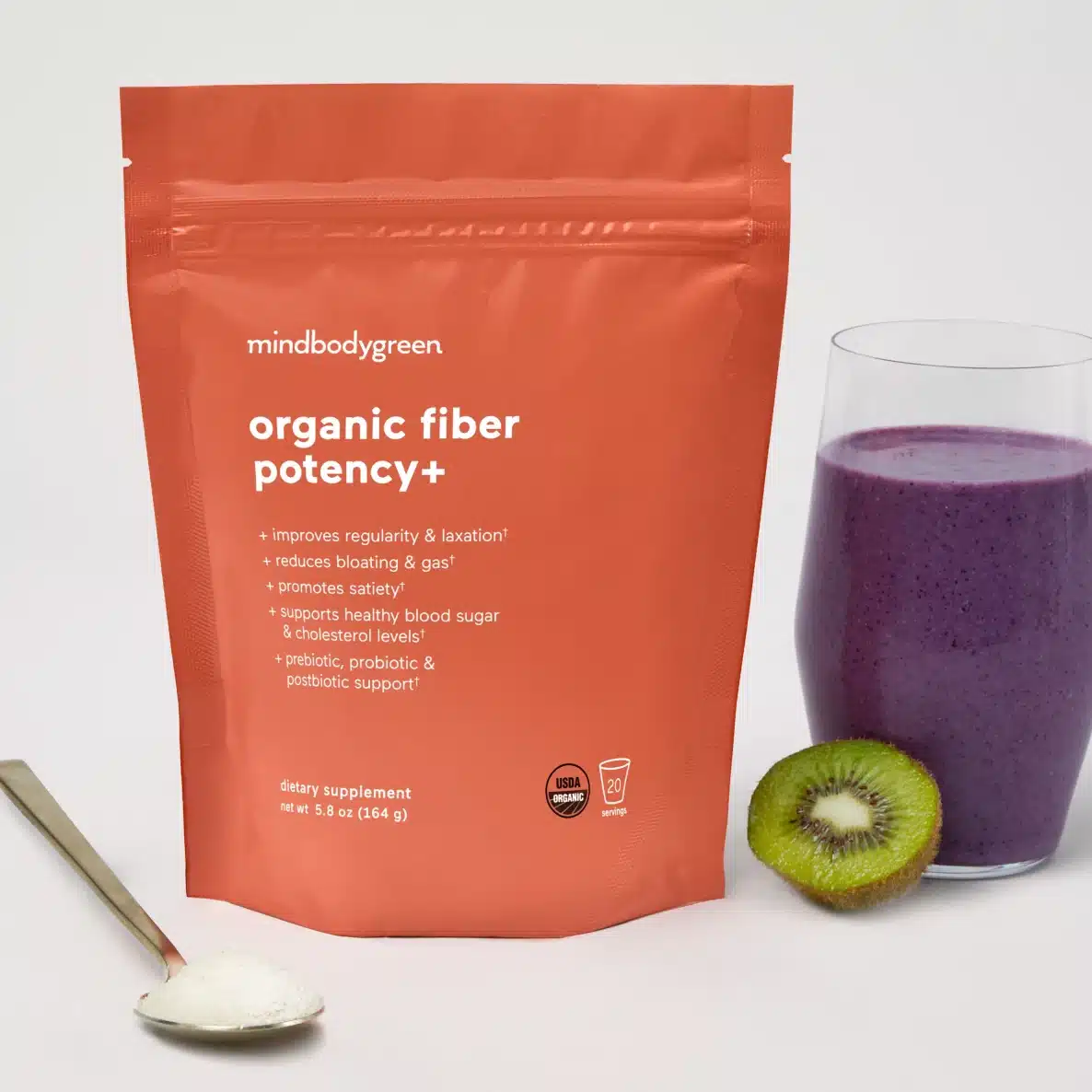 Complementing our organic plant fibers, Bacillus subtilis ATCC122264 (as Sporevia™) is a unique and resilient spore-forming probiotic strain. Our clinically-researched 5 billion CFU dose of Sporevia™ provides an efficacious and durable probiotic clinically shown to promote beneficial gut microbes, combat intensity and frequency of gas and bloating, facilitate stool consistency, enhance abdominal comfort, and support vitality and well-being.
