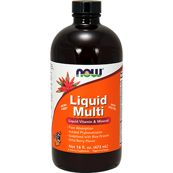 This unique formula utilizes brown rice protein as a stabilizing agent for maximum bioavailability of the vitamins, minerals and phytonutrients.Fast Absorption; Added Phytonutrients; Stabilized with Rice Protein; Wild Berry Flavor; Iron-Free**; With Xylitol; ‘Dietary ConsiderationsWheat FreeDairy/ Milk FreeGluten FreeVegetarianYeast FreeStarch FreeSalt FreeVeganFree of Artificial Colors/FlavorsEgg Free’Serving Size:1 Tablespoon’Servings Per Container:31’Amount Per ServingCalories25Total Carbohydrate6 gSugar Alcohols (as Xylitol)3 gVitamin A [from 60% Retinyl Palmitate & 40% Beta-Carotene(as pro-Vitamin A 1.2 mg)]5000 IUVitamin C (as Ascorbic Acid)250 mgVitamin D (as Ergocalciferol)400 IUVitamin E (from d-alpha Tocopheryl Acetate)100 IUVitamin B-1 (as Thiamine Hydrochloride)10 mgRiboflavin (Vitamin B-2)10 mgVitamin B-3 (from Niacinamide)25 mgVitamin B-6 (from Pyridoxine Hydrochloride)10 mgFolate (as Folic Acid)400 mcgVitamin B-12 (as Cyanocobalamin)100 mcgBiotin100 mcgVitamin B-5 (from Calcium d-Pantothenate)25 mgCalcium (from Calcium Carbonate)25 mgIodine [from Kelp (Laminaria digitata)]75 mcgMagnesium (from Magnesium Oxide)10 mgZinc (from Zinc AAC)3 mgSelenium (from Selenopure L-Selenomethionine)15 mcgManganese (from Manganese AAC)2 mgChromium (from Chromium Chelavite AAC)10 mcgPotassium (from Potassium Chloride)25 mgWild Berry Concentrate175 mgVitaBerry Hi-ORAC Fruit Blend50 mgAloe Vera Juice50 mgColloidal Minerals (Fulvic Acid)50 mgRice Protein Concentrate (from Non-GMO Brown Rice)30 mgCholine (from Choline Bitartrate)25 mgInositol25 mgKelp (Laminaria digitata)15 mgGrapeseed Extract (Vitis vinifera)(90% Polyphenols)10 mgCitrus Bioflavonoids10 mgLutein (from Marigold Extract)100 mcgLycopene (from Natural Tomato Extract)100 mcg’Other Ingredients:De-Ionized water, vegetable glycerin, xylitol, natural flavors, non-GMO soy lecithin, citric acid, malic acid, xanthan gum, potassium sorbate’SUGGESTED USAGE: Shake well. As a dietary supplement, For AdultsL take 1 tablespoon (15 mL) 1 to 2 times daily with meals. For children 4 years and older: take 1 teaspoon (5 mL) 1 to 2 times daily with meals.*AAC = Amino Acid Chelate Contains no sugar, salt, starch, yeast, wheat, gluten, milk, egg or artificial colors or flavors. Wild Berry Concentrate consists of natural chokeberry, elderberry, blueberry, black currant and appple fruit concentrates. Shake well before use. Refrigerate after opening to preserve flavor. Vegetarian/Vegan Product. Store in a cool, dry place. California Residents Prop 65 Warning: This product contains a substance known to the State of California to cause birth defects or other reproductive harm.