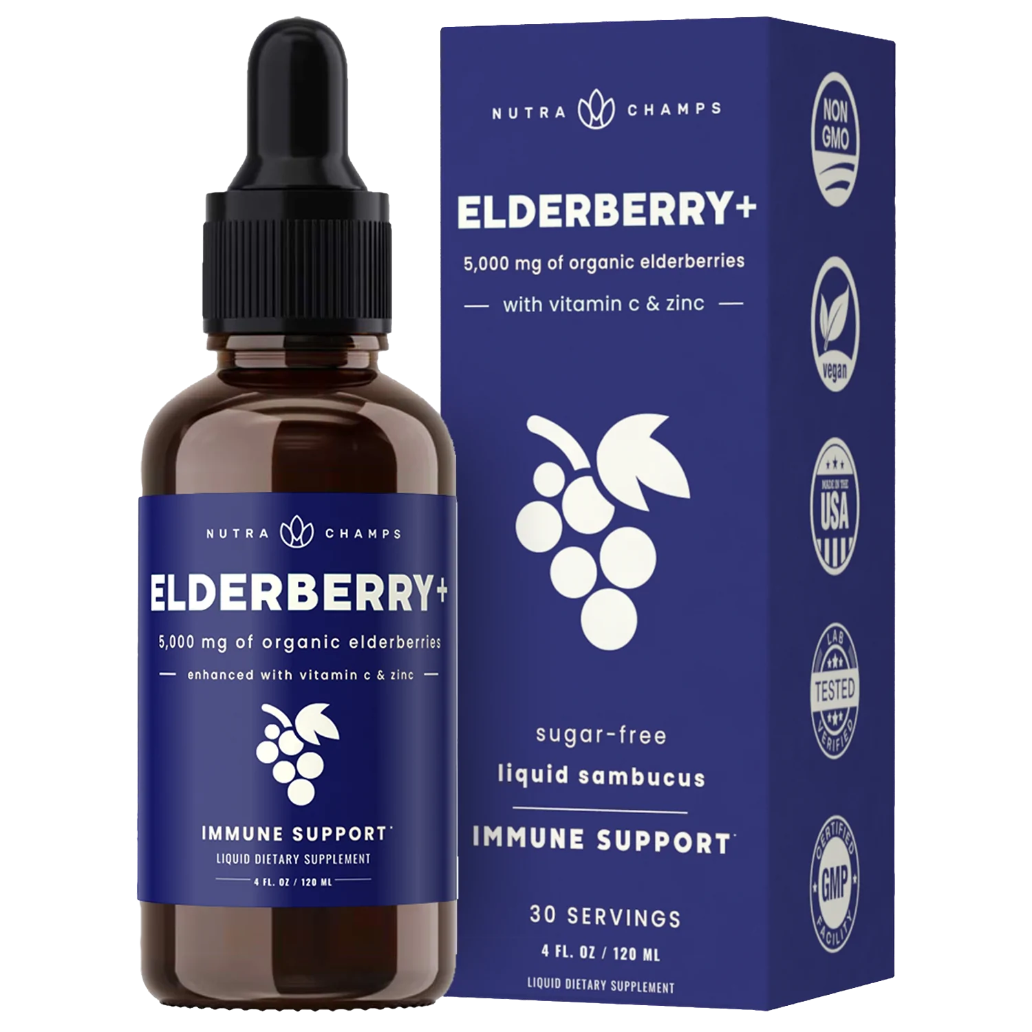 Elderberry+ delicious drops deliver a powerful 5,000mg of organic berries in each serving, providing powerful antioxidant support for your immune system and overall wellbeing. With added Vitamin C and Zinc, this extra strength formula helps shield your body and keep you and your family in great shape for whatever life throws your way.