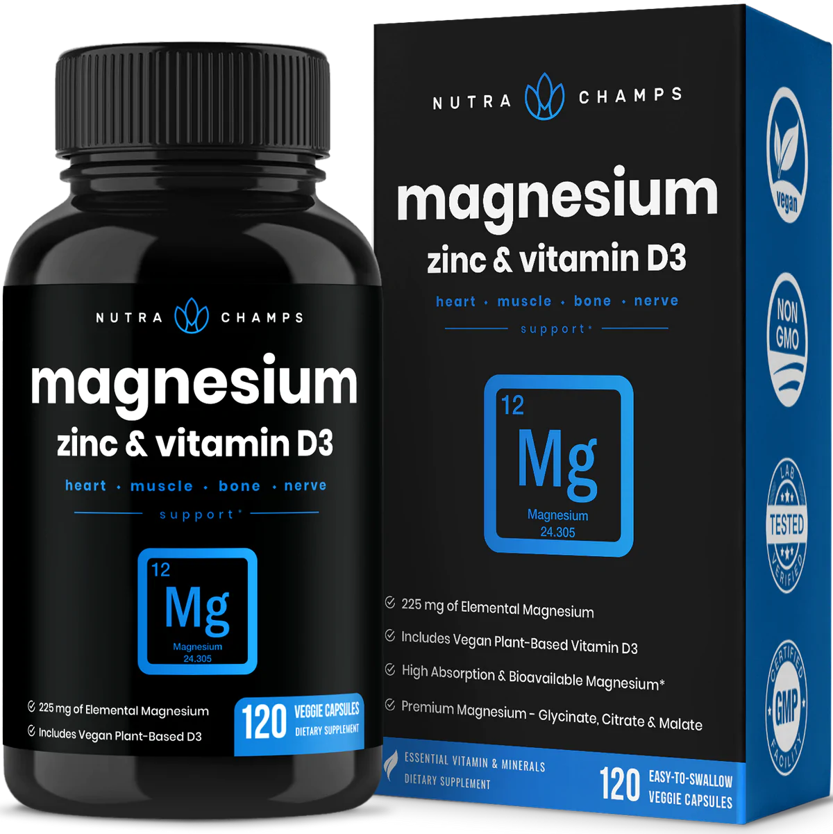 This formula features high absorption, pure elemental Magnesium enhanced with Zinc and Vitamin D3. All three are essential for hundreds of enzymatic processes in your body that support your bones, brain, muscles, nerves, vitality, digestion, gut and immune system.