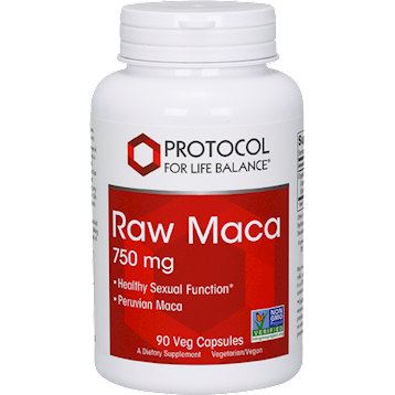 The herb maca (Lepidium meyenii) is native to the Andes region of Peru, where it has a long history of use both as a food and a general energy tonic. Modern scientific studies indicate that natural constituents in maca may help to support healthy sexual activity in males, without exerting any direct effect on endocrine function. Protocol for Life Balance Raw Maca is gelatinized to remove starch for a more concentrated product. Healthy Sexual Function Peruvian Maca Dietary Considerations Wheat Free Dairy/ Milk Free Gluten Free Soy Free Vegan Corn Free Egg Free Shellfish Free Non-GMO Serving Size: 1 Vegetable Capsule Servings Per Container: 90 Amount Per Serving Organic Raw Maca Root (Lepidium meyenii) (Gelatinized – vegetarian) (6:1 Concentrate) (Equivalent to 4,500 mg of fresh Maca Root) 750 mg Other Ingredients: Hypromellose (cellulose capsule), Hydroxypropyl Cellulose, Silicon Dioxide, Magnesium Stearate (vegetable source) Suggested usage: take 1 capsule 1 to 2 times daily, or as directed by your healthcare practitioner. Non-GMO. Vegan. Not manufactured with yeast, wheat, gluten, soy, corn, milk, egg, fish, shellfish or tree nut ingredients. Produced in a GMP facility that processes other ingredients containing these allergens. Cautions/interactions: For adults only. Consult your healthcare practitioner if pregnant/nursing, taking medication, or have a medical condition. Keep out of reach of children. Natural color variation may occur in this product. Gelatinization is a completely vegetarian process that removes starch from maca to yield a more concentrated product. Gelatinization does not refer to gelatin, and no animal derived ingredients are incorporated into this process.