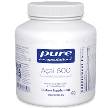 Aai berry extract combined with a fruit blend to support healthy cellular function. Aai berry extract (Euterpe oleracea), native to Brazil, offers an exceptional nutritional composition of vitamins, minerals, fiber, essential fatty acids, amino acids, and anthocyanins. Pure Encapsulations’ aai berry is harvested by hand to preserve the integrity of the palm tree and the delicate rain forest ecosystem. Berries are also hand-sorted and selected for quality. In this formula, aai is combined with blueberry, pomegranate, cranberry, and raspberry for additional support. Formulated with aai berry extract and fruit blend for antioxidant protection Sustainably harvested to preserve the integrity of the palm tree and the rain forest ecosystem Made with aai, blueberry, pomegranate, and cranberry extract Made with hypoallergenic, vegan ingredientsDietary ConsiderationsGluten Free Non-GMOServing Size:1 CapsuleServings Per Container:180Amount Per ServingAai (Euterpe oleracea) berry extract (whole fruit) 600 mgBlueberry (Vaccinium angustifolium) extract (fruit) 15 mgPomegranate (Punica granatum) extract (fruit) (standardized to contain 40% punicosides) 25 mgCranberry (Vaccinum macrocarpon) concentrate (fruit) 10 mg Other Ingredientsvegetarian capsule (cellulose, water), hypoallergenic plant fiber (cellulose), cranberry fiber, cranberry seed oil, guar gum, sunflower lecithinSuggested UseAs a dietary supplement, take 1 capsule, 1-2 times daily, with or between meals.WarningIf you are pregnant or lactating, have any health condition or are taking any medication, consult your health professional before use. Keep out of the reach of children. Use only if safety seal is intact. Store in a cool, dry place.