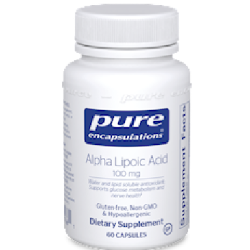 Water and lipid-soluble antioxidant; supports healthy glucose metabolism and nerve health. Alpha lipoic acid is both water and fat-soluble which allows it to function in almost any part of the body as an antioxidant. A key component of the metabolic process, alpha lipoic acid produces energy in muscles and directs calories into energy production. Also, it helps maintain healthy glucose metabolism, supports the nervous system and provides nutritional support for healthy liver function. Alpha lipoic acid supported nerve health in subjects who participated in a randomized, double-blind, placebo-controlled, multicenter trial. The ability of alpha lipoic acid to modulate nitric oxide metabolite activity and to promote healthy microcirculation accounted for its ability to promote nerve cell health in two separate studies. Alpha Lipoic Acid is a multifunctional nutrient which plays a key role in the antioxidant network and the metabolic process. Supports healthy glucose metabolism and the nervous system with water and fat-soluble antioxidants Can function as antioxidant in almost any part of the body Made with hypoallergenic, vegan ingredientsDietary ConsiderationsGluten FreeNon-GMOServing Size:1 Vegetable CapsuleServings Per Container:60Amount Per ServingAlpha lipoic acid (thioctic acid) 100 mg Other Ingredientshypoallergenic plant fiber (cellulose), vegetarian capsule (cellulose, water), ascorbyl palmitateSuggested UseAs a dietary supplement, take 1 capsule, 1-4 times daily, with meals, or as directed by a health professional.WarningIf you are pregnant or lactating, have any health condition or are taking any medication, consult your health professional before use. Keep out of the reach of children. Use only if safety seal is intact. Store in a cool, dry place.
