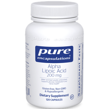 Water and lipid-soluble antioxidant; supports healthy glucose metabolism and nerve health. Alpha lipoic acid is both water and fat-soluble which allows it to function in almost any part of the body as an antioxidant. A key component of the metabolic process, alpha lipoic acid produces energy in muscles and directs calories into energy production. Also, it helps maintain healthy glucose metabolism, supports the nervous system and provides nutritional support for healthy liver function. Alpha lipoic acid supported nerve health in subjects who participated in a randomized, double-blind, placebo-controlled, multicenter trial. The ability of alpha lipoic acid to modulate nitric oxide metabolite activity and to promote healthy microcirculation accounted for its ability to promote nerve cell health in two separate studies. Alpha Lipoic Acid is a multifunctional nutrient which plays a key role in the antioxidant network and the metabolic process. Supports healthy glucose metabolism and the nervous system with water and fat-soluble antioxidantsCan function as antioxidant in almost any part of the bodyMade with hypoallergenic, vegan ingredientsDietary ConsiderationsGluten FreeNon-GMOServing Size: 1 CapsuleServings Per Container:120Amount Per ServingAlpha lipoic acid (thioctic acid) 200 mgOther Ingredientshypoallergenic plant fiber (cellulose), vegetarian capsule (cellulose, water), ascorbyl palmitateSuggested UseAs a dietary supplement, take 1 capsule, 1-4 times daily, with meals.WarningIf you are pregnant or lactating, have any health condition or are taking any medication, consult your health professional before use.Keep out of the reach of children.Use only if safety seal is intact. Store in a cool, dry place.