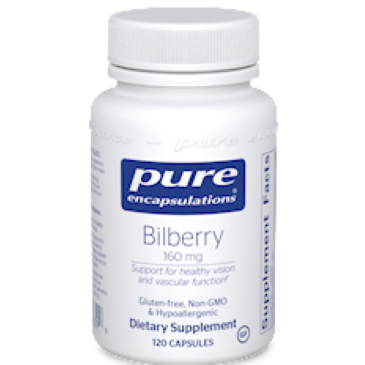 Support for healthy vision and vascular function Bilberry extract contains anthocyanidins with visual and vascular supporting properties. Bilberry moderates visual fatigue and supports light to dark adjustment through its affinity for the rhodopsin-opsin system, the pigment system which mediates both light and dark vision and visual adaptation to dimly lit spaces. Also, the extract promotes the retina’s enzymatic antioxidant defenses. In the vascular system the anthocyanidin extract supports the integrity of vascular walls by increasing vitamin C levels within cells, decreasing the permeabilizing effect of certain proteolytic/lysosomal enzymes, stabilizing cell membranes, and stimulating the synthesis of collagen and connective ground substance tissue Promotes a strong vascular system Made with hypoallergenic, vegan ingredientsDietary ConsiderationsGluten Free Non-GMOServing Size: 1 CapsuleServings Per Container:120Amount Per ServingBilberry (Vaccinium myrtillus) extract (fruit) (standardized to contain 25% anthocyanosides) 160 mgOther Ingredientsvegetarian capsule (cellulose, water), hypoallergenic plant fiber (cellulose), ascorbyl palmitateSuggested UseAs a dietary supplement, take 1 capsule, 1-4 times daily, between meals.WarningIf you are pregnant or lactating, have any health condition or are taking any medication, consult your health professional before use. Keep out of the reach of children. Use only if safety seal is intact. Store in a cool, dry place.