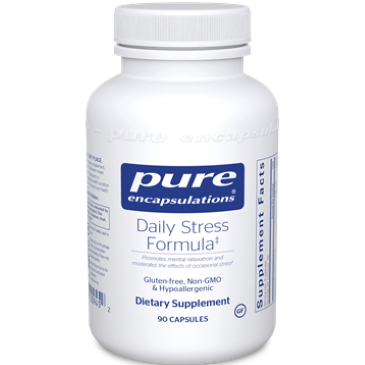 td {border: 1px solid #cccccc;}br {mso-data-placement:same-cell;}Broad-spectrum formula designed to promote mental relaxation and moderate the effects of occasional stress. In addition to promoting memory and cognitive function; preclinical investigation shows Bacopa monnieri maintains healthy enzyme activity in the brain, supporting the ability to deal with stress. In several clinical studies, bacopa supported learning and memory. A double-blind crossover trial suggested that rhodiola may help to moderate mild fatigue under stressful conditions. In a separate, double-blind, placebo-controlled pilot study, rhodiola provided support for physical, and mental stress in students. Similarly, the amino acid l-tyrosine has indicated the potential to promote cognitive function and memory under stressful conditions. Eleutherococcus senticosus, or eleuthero, is used as an adaptogen to help bolster adrenal function and stress resistance. Like ashwagandha, it is highly revered for promoting energy, vitality and immune defense. Chamomile and lemon balm provide traditional support for calmness and relaxation. B vitamins and magnesium are included to help counter the effects of stress on a healthy nutritional status. B-complex vitamins have also been associated with healthy neurotransmitter function and energy metabolism. Vitamin B5 is especially important for supporting healthy adrenal gland function to help strengthen the bodys ability to withstand stress. Vitamin C provides important support for neutralizing free radicals generated by the stress response. Helps combat occasional stress Promotes cognitive function Made with chamomile and lemon balm to help support calmness and relaxation Made with hypoallergenic, vegan ingredientsDietary ConsiderationsGluten Free Non-GMOServing Size: 3 Vegetable CapsuleServings Per Container: 30Amount Per Serving % Daily ValueVitamin C (as ascorbic acid) 250 mg 278% Thiamin (as thiamin HCl) (B1) 20 mg 1667% Riboflavin (as vitamin B2 and 44% riboflavin 5 phosphate (activated B2)) 17.7 mg 1362% Niacin (as niacinamide) 35 mg 219% Vitamin B6 (as pyridoxine HCl and 40% pyridoxal 5 phosphate (activated B6)) 16.7 mg 982% Vitamin B12 (as methylcobalamin) 200 mcg 8333% Pantothenic acid (as calcium pantothenate) (B5) 200 mg 4000% Magnesium (citrate) 50 mg 12% L-tyrosine (free-form) 250 mg Eleuthero (Eleutherococcus senticosus) extract (root) (standardized to contain 0.8% eleutherosides) 200 mg Bacopa (Bacopa monnieri) extract (leaf) (standardized to contain 20% bacosides) 200 mg Rhodiola (Rhodiola rosea) extract (root) (standardized to contain 3% total rosavins and 1% salidroside) 200 mg Chamomile (Matricaria recutita) extract (flower) 100 mg Lemon balm (Melissa officinalis) extract (leaf) (standardized to contain 5% rosmarinic acid) 100 mg Ashwagandha (Withania somnifera) extract (root) (standardized to contain 2.5% withanolides) 200 mgOther Ingredientsvegetarian capsule (cellulose, water), hypoallergenic plant fiber (cellulose), ascorbyl palmitateSuggested UseAs a dietary supplement, take 3 capsules daily, in divided doses, with or between meals.WarningNot to be taken by pregnant or lactating women. If you have any health condition or are taking any medication, consult your health professional before use. Keep out of the reach of children. Use only if safety seal is intact. Store in a cool, dry place.