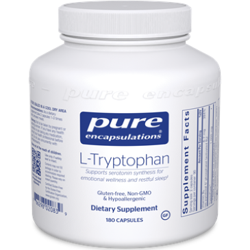 Enhances serotonin synthesis to support emotional well-being and restful sleep The essential amino acid l-tryptophan is a serotonin precursor. Research indicates that l-tryptophan supplementation may support emotional well-being and restful sleep. In a double-blind, placebo-controlled study, l-tryptophan supported healthy emotional processing and promoted positive outlook in women. In a separate study, it supported healthy mood and lessened occasional irritability during the menstrual cycle. l-Tryptophan also supports healthy sleep quality, onset and duration. Additional research suggests that tryptophan may promote relaxation and help control occasional cravings. Vitamin B6 provides enhanced support as important cofactors involved in the metabolism of l-tryptophan. Supports emotional well-being and restful sleepPromotes healthy sleep quality, onset and durationMade with hypoallergenic, vegan ingredientsDietary ConsiderationsGluten Free Non-GMOServing Size: 1 CapsuleServings Per Container: 180Amount Per Serving % Daily ValueVitamin B6 (as pyrid oxal 5’phosphate) (activated B6) 6.7 mg 394% Tryptopure 1000 mgOther Ingredientsvegetable capsule (cellulose, water)Suggested UseAs a dietary supplement, take 2 capsules , 1-3 times daily, between meals.WarningNot to be taken by pregnant or lactating women. If you have any health condition or are taking any medication, particularly psychiatric medication, consult your health professional before use. Do not use concurrently with antidepressants. Keep out of the reach of children. Use only if safety seal is intact. Store in a cool, dry place.