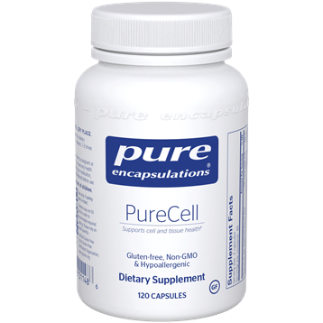 Advanced antioxidant and adaptogen cellular health formula; maintains healthy cell function and protects healthy tissue Formulated with Steve Morris, N.D., A.H.G. This formula offers advanced antioxidant and adaptogen support for maintaining cell health and protecting healthy tissue. Antioxidant vitamins and minerals promote healthy cell function and cell longevity, as indicated in numerous trials involving over 8,500 individuals. Adaptogens are important for physiological and cellular homeostasis and have positive effects on immune function and oxidative stress. This product was designed to: Offer intracellular as well as extracellular antioxidant protection with alpha lipoic acid Target superoxide anion, hydrogen peroxide and hydroxyl radicals with coenzyme Q10, maintaining the integrity of cellular membranes Replenish glutathione, scavenge free radicals, and promote liver function with n-acetyl-l-cysteine and selenium Support healthy cyclooxygenase enzyme activity with curcumin Support macrophage, natural killer cell and T-cell activity with astragalus Promote healthy cell signaling and gene expression at the cellular level while encouraging overall energy and vitality with ashwagandha and Panax ginseng Provides advanced antioxidant support Helps maintain cell and tissue health Made with hypoallergenic, vegan ingredients PureCell is an antioxidant and adaptogen blend designed to help provide advanced antioxidant support and maintain cell and tissue health. Dietary Considerations Gluten Free Non-GMO Serving Size: 2 Capsule Servings Per Container: 60 Amount Per Serving % Daily Value Vitamin D (as cholecalciferol) (D3) (400 IU) 10 mcg 50% Selenium (as selenomethionine) 100 mcg 182% Coenzyme Q10 100 mg N-Acetyl-L-Cysteine (free-form) 100 mg Alpha lipoic acid (thioctic acid) 75 mg Ashwagandha (Withania somnifera) extract (root) (standardized to contain 2.5% withanolides) 180 mg Turmeric (Curcuma longa) extract (root) (standardized to contain 95% curcuminoids) 150 mg Asian ginseng (Panax ginseng) extract (root) (standardized to contain 5% ginsenosides) 150 mg Green tea (Camellia sinensis) extract (leaf) (decaffeinated) (standardized to contain 90% total tea catechins and 70% epigallocatechin gallate (EGCG)) 100 mg Astragalus (Astragalus membranaceus) extract (root) 87 mg Other Ingredients: vegetarian capsule (cellulose, water), hypoallergenic plant fiber (cellulose), ascorbyl palmitate As a dietary supplement, take 2 capsules, 12 times daily, with meals. Not to be taken by pregnant or lactating women. If you have any health condition, or are taking any medication, consult your health professional before use. Keep out of the reach of children. Use only if safety seal is intact. Store in a cool, dry place.