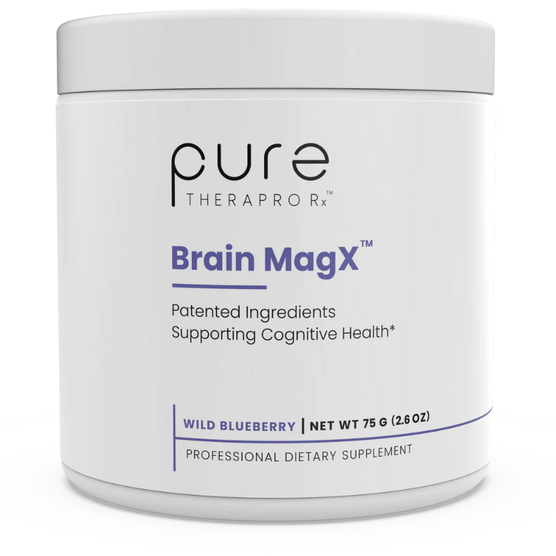Brain MagX is a wild blueberry brain and nervous system formula containing clinically proven nootropic ingredients for maximum cognitive function support. ✔ Magtein (Magnesium L-Threonate), the only form of magnesium proven in animal studies to cross the blood-brain barrier and proven to raise the magnesium level in the brain. This is vital to healthy cognition; including supporting long- and short-term memory, learning, supporting clear thinking, and supporting a positive mood. ✔ Cognizin® the best-in-class, patented Citicoline backed by 48+ studies and published articles, is a powerful nootropic nutrient clinically proven to support multiple areas of brain health, including: brain cell membrane formation, memory, mental energy, focus, attention, dopamine receptor health, appetite control, optimal vision and healthy motor speed. ✔ cGMP Quality All Pure TheraPro Rx® formulas meet or exceed cGMP quality standards. This product is manufactured in the United States in a GMP-certified facility. CLINICALLY STUDIED Cognizin® Citicoline, cognitive support from the inside! Cognizin® supports long- and short-term memory as well as both immediate and delayed memory. Additional studies have shown that Cognizin® supports attention and focus. Most compelling is it’s ability to support brain structure (tissue regeneration support) because of its ability to cross the blood-brain barrier. SUPPORTS: Healthy brain magnesium levels, healthy synapse number & function, cognitive health, stress management, sleep quality, & healthy mood. SAFE & EFFECTIVE: This brain support supplement is 100% vegan, caffeine-free, gluten free, sugar-free / sweetened with monk fruit and China-Free (NO raw materials are sourced from China). Third party tested. Purity is our priority. WHAT’S NOT THERE IS ALMOST AS IMPORTANT AS WHAT IS: We formulated our product with your needs in mind, that’s why it is non-GMO, soy and gluten free, and unlike other brands does not contain the additive magnesium stearate whic