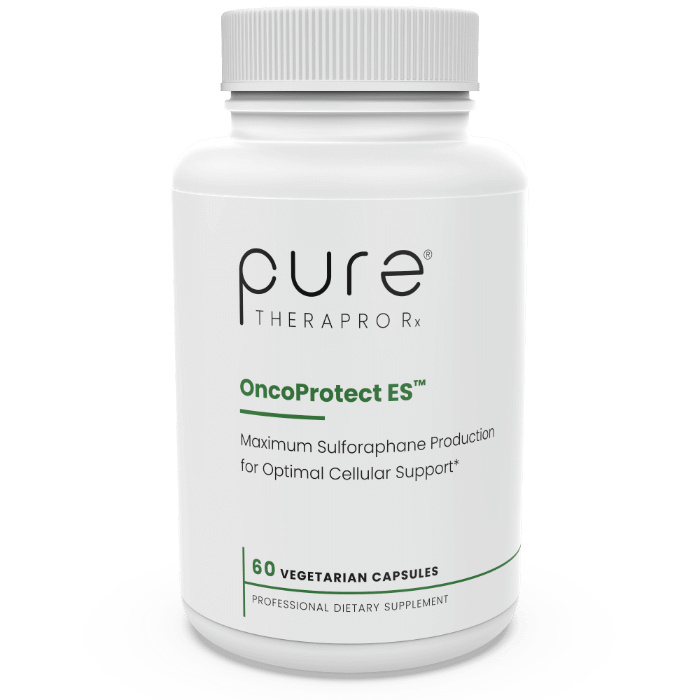 OncoProtect ES™ “Extra Strength” is an advanced vegan free-radical-fighting formula containing both Glucoraphanin (from TrueBroc®) and active Myrosinase enzymes in a delayed release capsule. Utilizing a patented process, Glucoraphanin is extracted from broccoli seeds to provide a potent source of bioavailable Sulforaphane (SFN). Published in over 500 journal publications since 1992, research shows SFN plays a vital role in antioxidant activity and is key to the production of detoxification enzymes in the body. When combined with Myrosinase (an activator of sulforaphane), this powerful formula provides efficient and long-lasting support for the body’s detoxification processes while also supporting optimal cellular health. Each capsule contains 100 mg of Glucoraphanin – equivalent to eating four pounds of cooked broccoli.* Provides 100 mg of Glucoraphanin per Capsule. Provides Concentrated Glucoraphanin from Broccoli Seed Extract Supports Healthy Cell-Life Cycles Supports Phase II Detoxification Enzymes Supports the Body’s Normal Response to Inflammation Supports Extended Antioxidant Activity