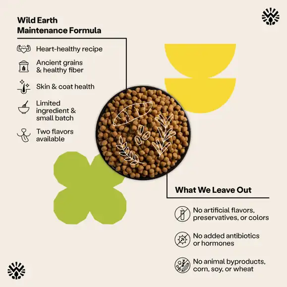 Wild Earth Maintenance Formula, Classic Roast & Golden Rotisserie Flavors are formulated to meet the nutritional levels established by the AAFCO Dog Food Nutrient Profiles for maintenance.